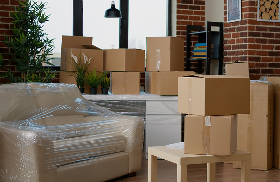 يبدون العمال يفكّون العفش مثل السراير، الدواليب، والمكاتب، ويلفّونه ببطانيات وتغليف بلاستيكي علشان ما يتخدش أو ينكسر.